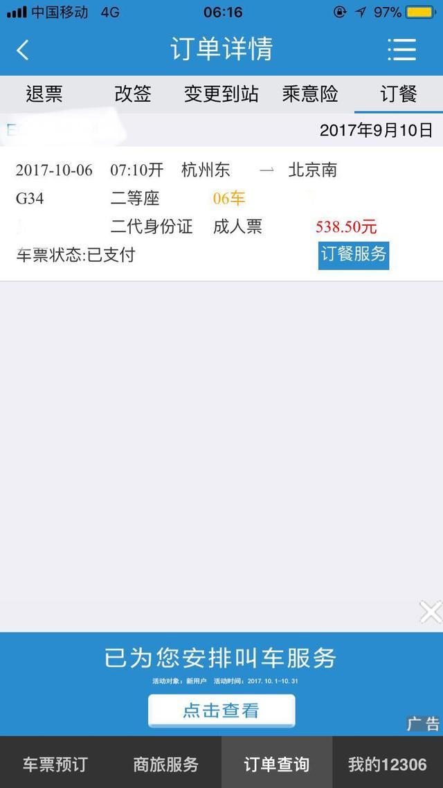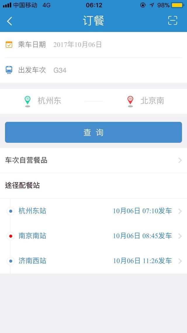 从已订车票的查询页面进入订餐页面,则相对稳定一些
