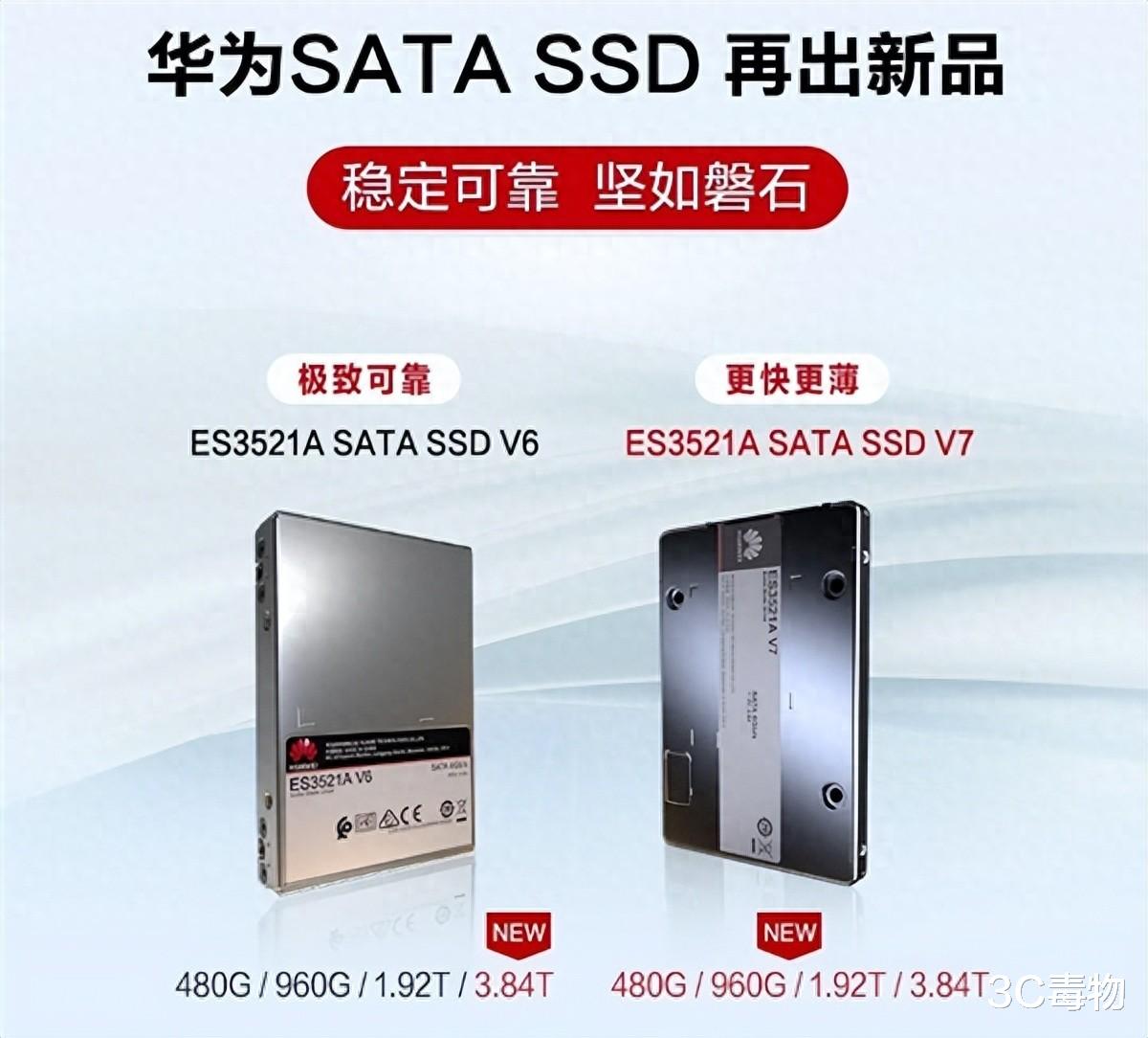 华为SATA SSD推出了一款全新的产品ES3521A SATA SSD V7,是在上一代的ES3521A SATA SSD V6基础上进行了升级。