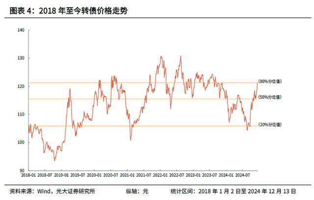 转债的平均价格为121.36元,分位值为80.37%,均价继续提升;