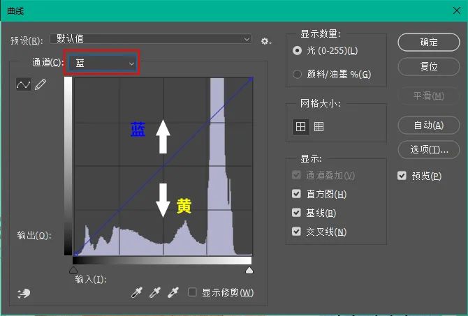 PS曲线工具还能对红(R)、绿(G)、蓝(B)三个通道的颜色单独进行调整: