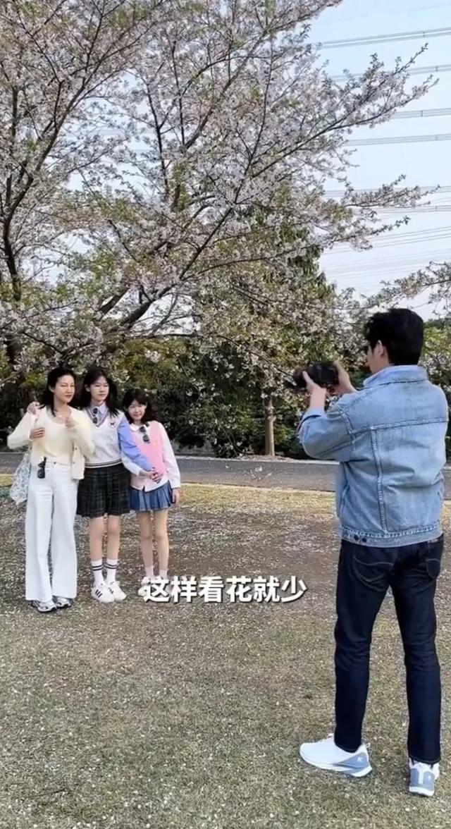 陆毅为鲍蕾和女儿拍樱花照,母女三人高颜值随手一拍就是写真