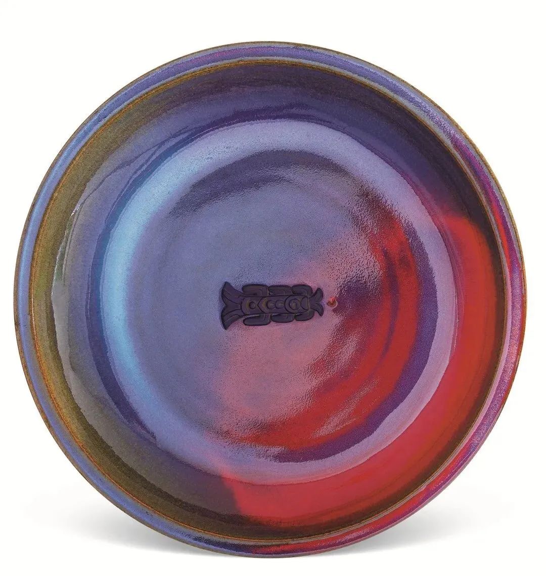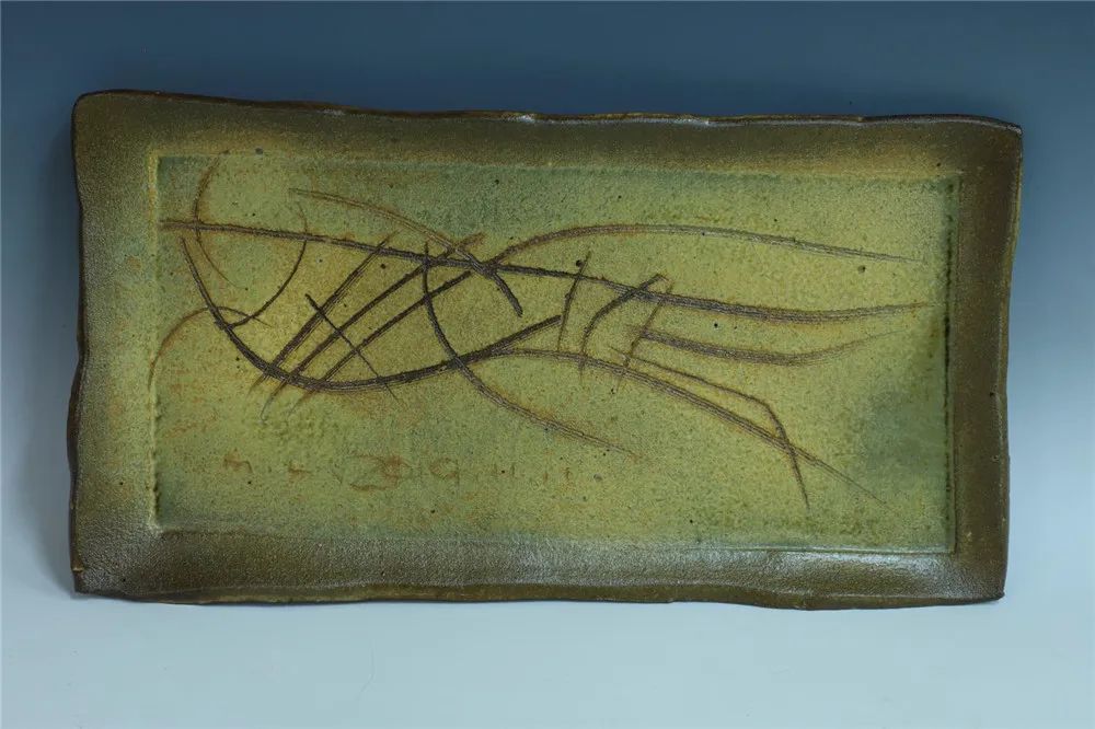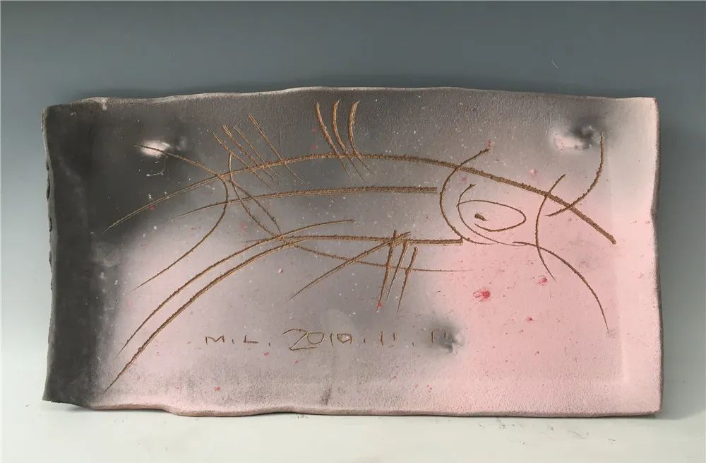而韩老师的陶艺与刻刀相连,一切都进行得古朴、自然而且流畅。庚子年来临前的那个金秋,在浙江理工大学地下一层的工作室,他的博士生替他准备了100个未经烧制的陶盘,夫人周建萍老师为他预留了一天的时间以便韩老师能以悠着点”的方式完成计划。简易的长方形工作台上,在有序放置的陶盘前边,竖立着一个现代的Ipad。韩老师把目光停留其上,那里装着他的天书”和其他图案的电子文件。当他锚定形象,刻刀已飞上右手,倏忽之间,手起刀落,身体的运势随着刻刀尖端游走,刀痕划过之处,被深”刻轻”带出来的陶土随线条四散飞扬,如奔马穿越广袤沙漠的宏阔场景。韩老师看了看刚刚在自己手中生成的图案,对它投以赞许的目光,数秒停顿后复持刻具落款,一个韩式陶盘便由此准备好进入下一个锻造阶段。当他刻完100个盘子的时候,正午的太阳明晃晃兀自照耀,提醒这一天还有一个下午的美好时光可以运筹潇洒。站立了整整一个上午的韩老师在学生搬来的凳子上缓缓坐下,直到那一刻大汗淋漓的他才像猛然感觉到什么,他说,我的力气呢,我的身体怎么有点飘了?!