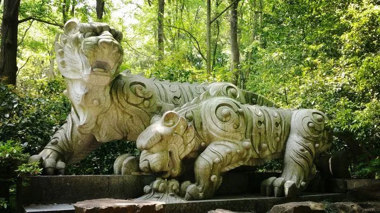 韩老师最钟爱的材料,也许是他做城市雕塑用的花岗岩和青铜。由于青铜本身的流动性使之易于浇铸和造型,色彩也凝重好看,他雕塑中的东方传统纹饰与符号能得以充分生动的实现。他竭力赋予传统艺术语言以现代性,让我们在回望历史的同时真切体悟时代的精神。韩老师也用花岗岩,杭州虎跑公园的老虎就用了这种坚硬的石材。对他来说,材质的恒久属性因寄寓了他的艺术理想而具有了象征的意味。他希望那融入了东方文化精神的雕塑永久挺立,他的作品为城市和人民长久喜爱。