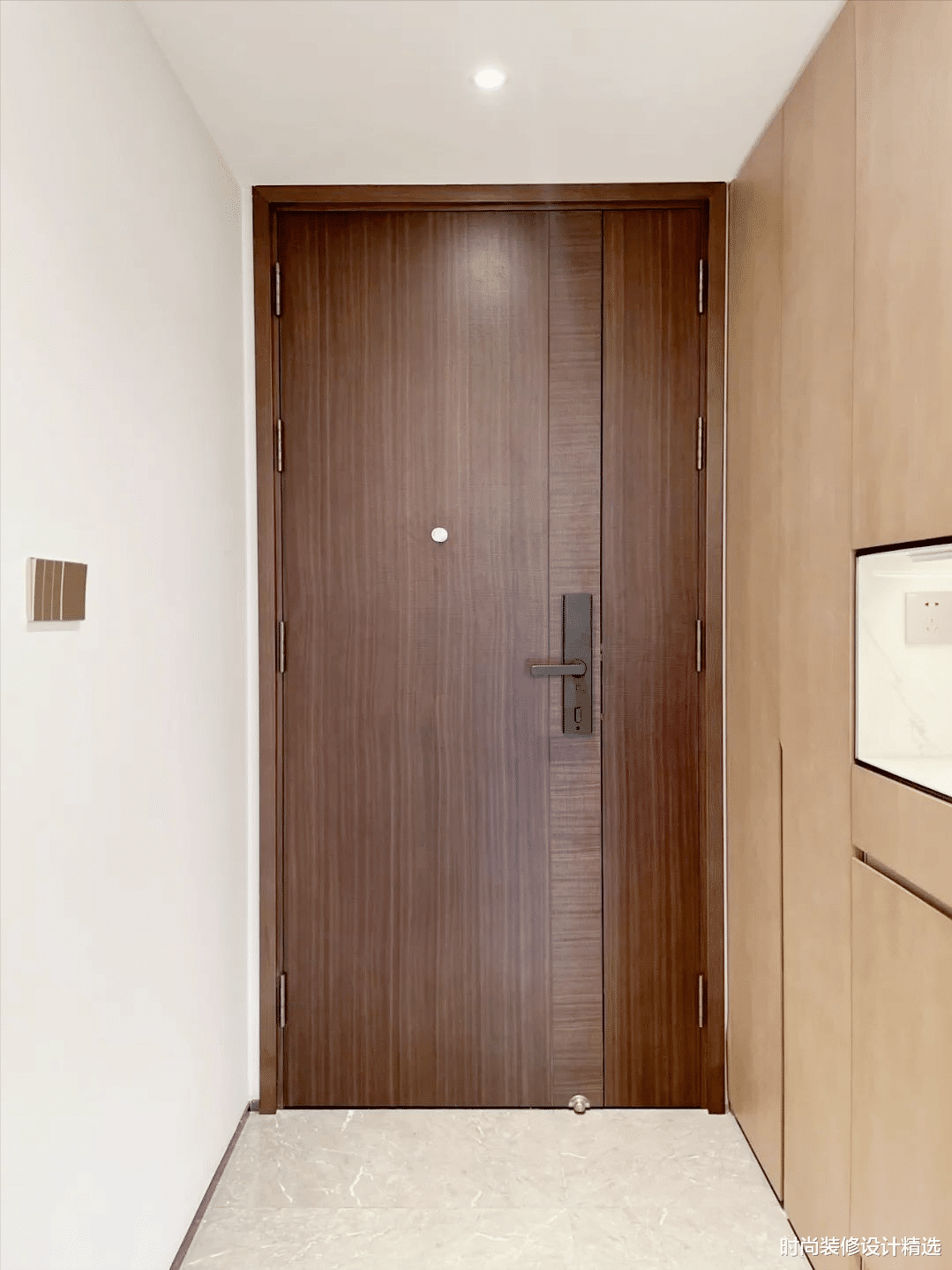 如果在入户门正对面放置镜子,晚上回家时,开门后会看到镜子中的倒影,可能会在没有开灯的情况下感到惊吓,这并不理想。