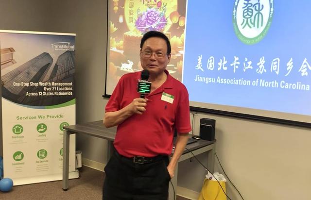 香港中华工商总会联席秘书长李书平先生致辞说,来北卡州已经两月有余,刚来的时候举目无亲,后来认识了几个朋友。今天参加江苏同乡会的中秋庆祝活动,见到、认识这么多的江苏同乡,真正有回家的感觉。作为南通人,想为南通站台宣传一下,南通靠江临海、人杰地灵,是有名的教育之乡、长寿之乡、建筑之乡、纺织之乡。