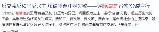 千龙网:反交流反和平反民主,终被唾弃注定失败——评赖清德“台独”分裂言行