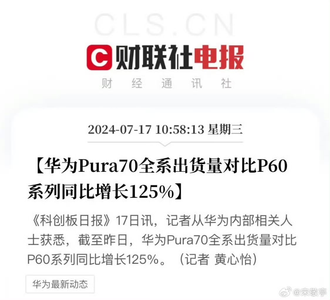 行业分析师郭明錤预测,2024年华为Pura 70系列的出货量将达到1300万至1500万台,较去年的P60系列增长约230%。TechInsights的报告则指出,Pura 70系列在2024年的出货量将超过1000万台,成为与苹果iPhone 15和16系列竞争的有力对手。华为全年智能手机出货量预计超过5000万台,市场份额将从去年的12%跃升至19%,重登中国市场的榜首。