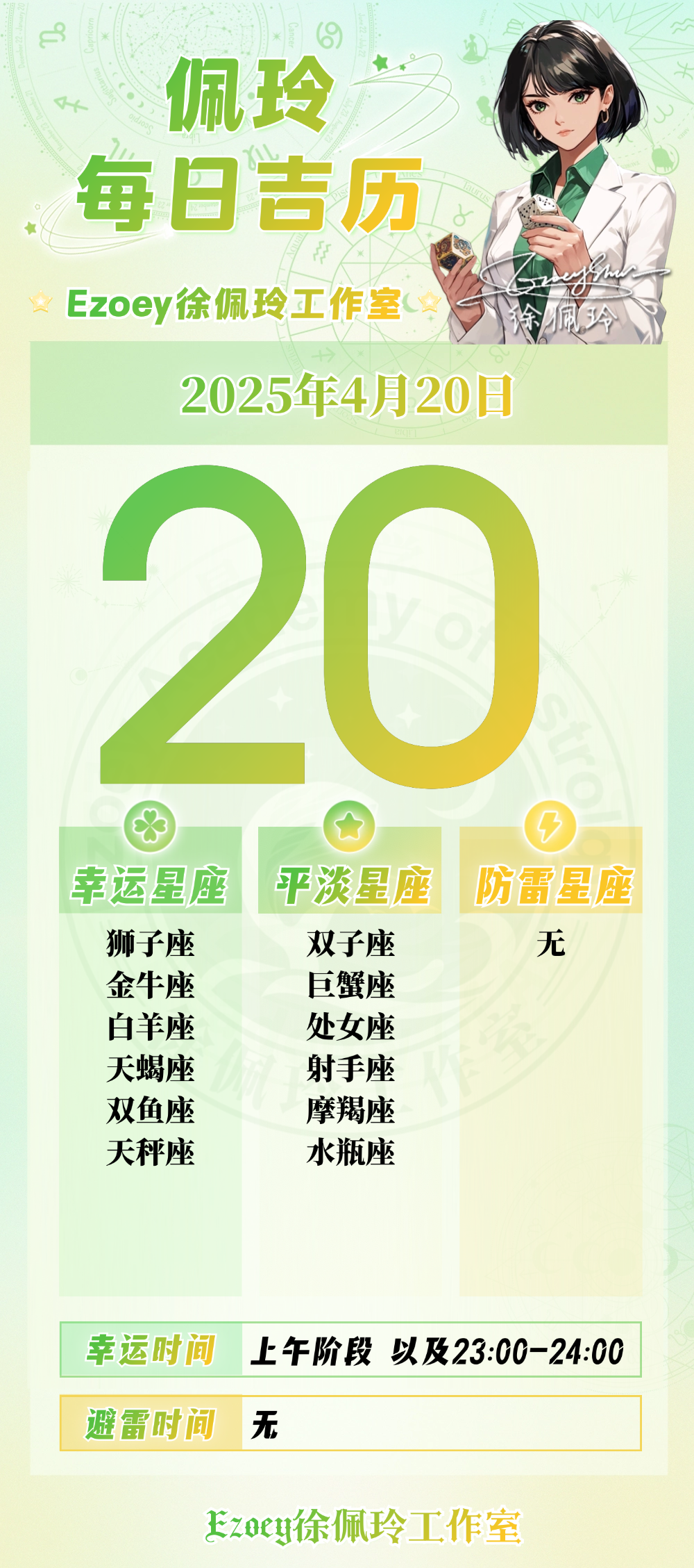 【4.20日播报】稳步前行日幸运星星:狮子座、金牛座、白羊座、天蝎座、双鱼座、天秤座—Ezoey徐佩玲25年星座播报