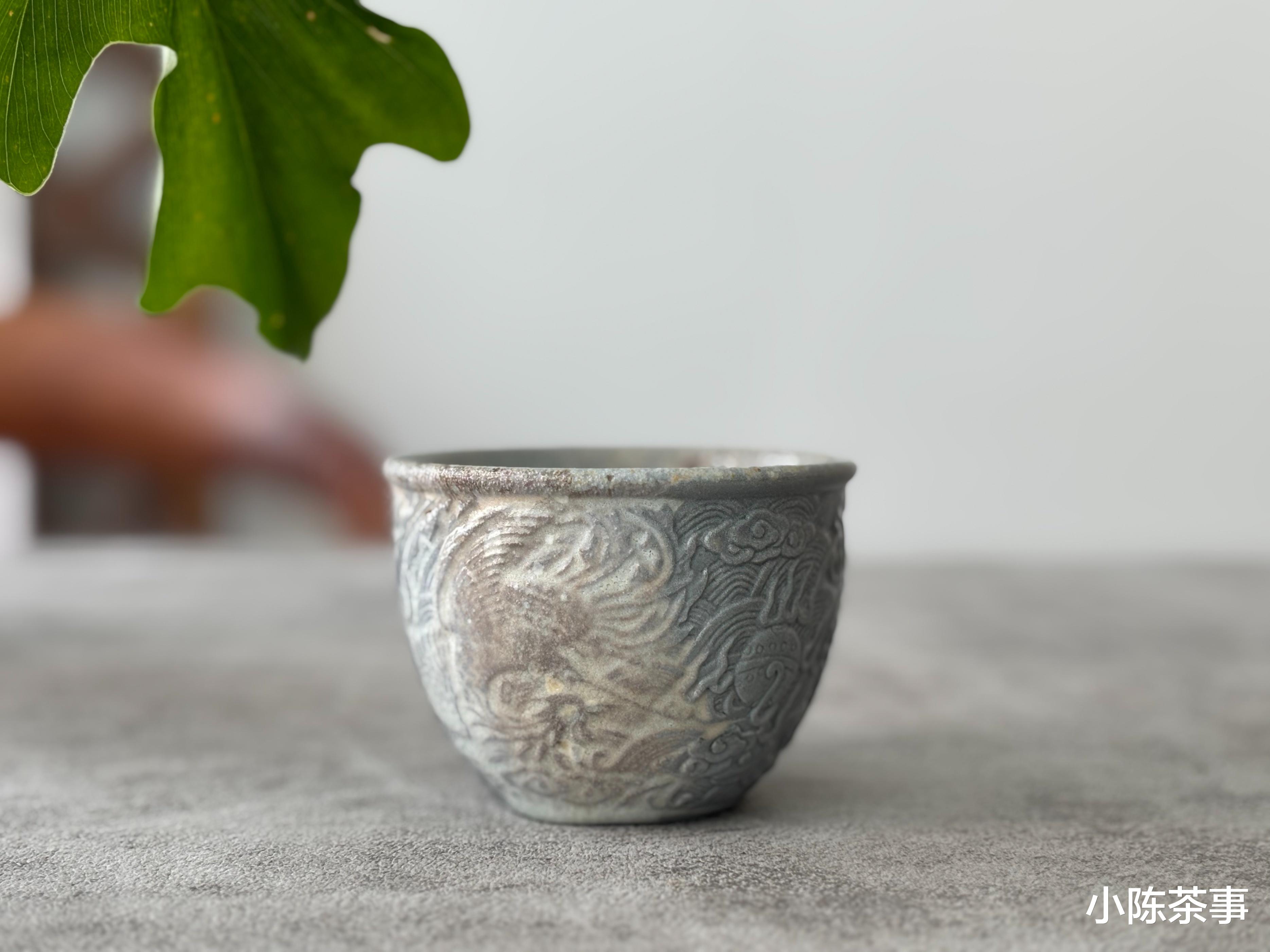 《祥龙》采用柴烧工艺,独特的烧制方式赋予杯子一种古朴的质感,杯身上手工刻绘的祥龙图案,线条刚劲有力,栩栩如生,仿佛随时都会腾飞而起,彰显着男士的豪迈气魄。