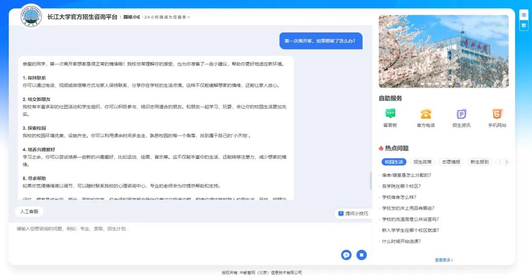 系统基于DeepSeek的强大技术,能精准识别你的提问意图,无论是复杂的志愿填报问题、还是关于校园生活的小疑惑,系统都能快速理解,给出精准答案!