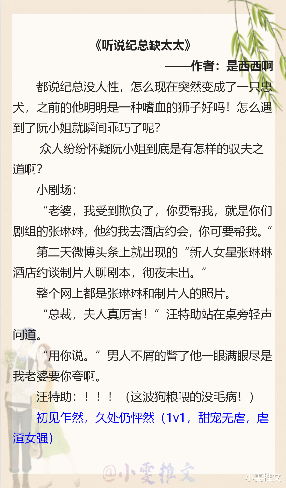 这期里面有你喜欢的小说吗?欢迎在评论区留言排雷啊!小雯每日更新推文,喜欢看文的小可爱们可以点一波收藏加关注哦。如果小可爱们有喜欢的小说也可以种草给我哦~