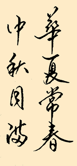 蒋长海:本科学历,高级讲师,系华港书画文化研究院副院长、华夏书法文化研究会名誉会长、中国书画文化协会理事、中国硬笔书法协会会员、中国硬笔书法协会书法研究员,一级美术师。蒋长海先生自幼喜欢书法艺术,数年执着追求,立足传统,广采博取,不断探索书法规律,勇于开拓自我的书法艺术新境界。常年研修书法滋养了兢兢业业的工作性格,1999-2008年间,在青岛黄海学院、青岛滨海学院任教务管理,2009-2017年于青岛联艺书画任书画主管,2018-至今任青岛印海书画教育学校校长。工作期间坚持书法和美术作品创作,参加全国书画比赛屡获金、银奖,被评为文艺工作者先进个人,近年来不少作品被文艺机构和书画爱好者收藏,得到专家和社会各界的一致好评。