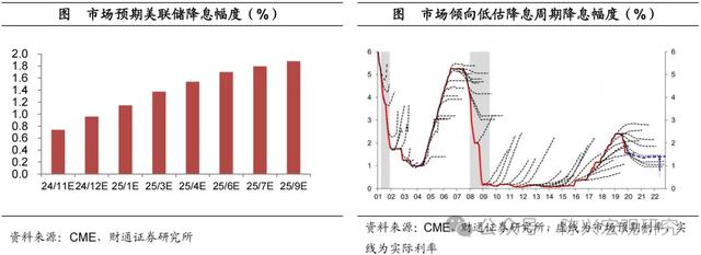 本轮降息力度或相对更大。由于通胀压力显著缓解,叠加就业市场出现疲软,美联储于9月降息50个BP,市场预期一年内美联储降息或接近1.7个百分点。我们认为,实际降息幅度可能更大。一方面,从历史经验来看,在降息周期中,美联储和市场倾向于低估降息幅度。另一方面,特朗普提到要加快降息步伐,随着其胜选概率回升,这一宣言或将逐渐演变为现实。