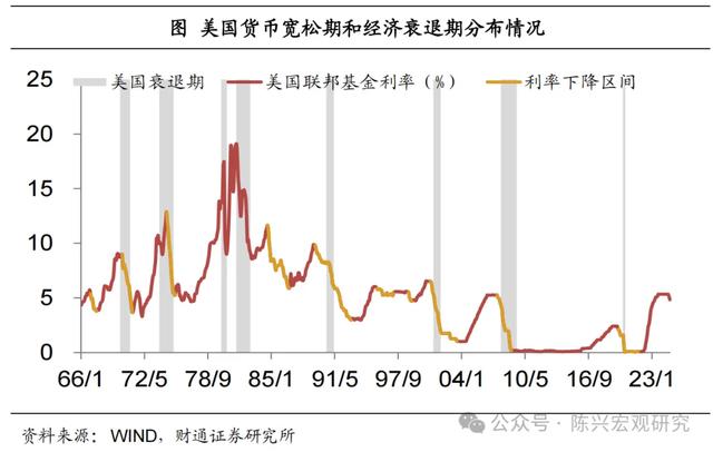 1966年以来,美国大致经历10轮完整的降息/宽松周期。在应对经济衰退或放缓时,美联储一般采取宽松货币政策以刺激经济。我们参考美联储的联邦基金目标利率走势以及历史上的美联储议息会议纪要,来划分美国的降息/宽松周期。