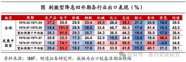 总体来看,刺激型降息发生在经济衰退时期,但并无严重经济危机。此时降息幅度中等,由于经济衰退程度较深,刺激政策所带来的出口增速恢复更加明显。降息对出口时滞影响在一年以上,但经济复苏后出口大幅改善,发达国家在这一类周期中的表现优于发展中国家,尤其在石油危机后的宽松周期。品类中,钢铁、机械和化工表现突出,而电子与交运后来者追上。