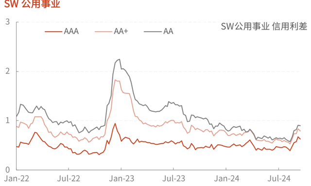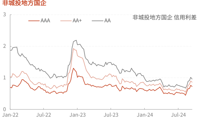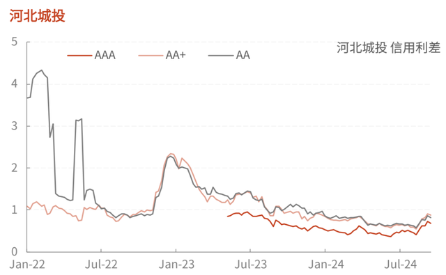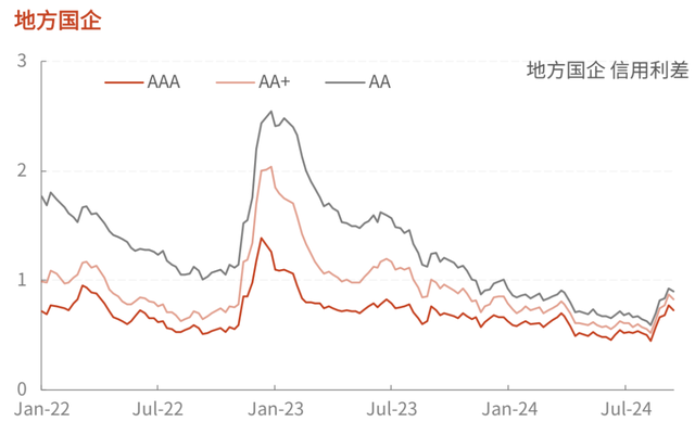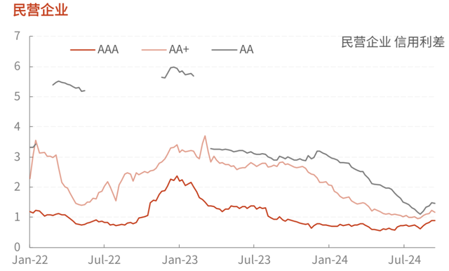 上周行业信用利差整体下行。申万一级行业中,AAA级行业信用利差上行最大的为汽车,上行0.2BP,下行最大的为通信,下行6.6BP;AA+级行业信用利差上行最大的为计算机,上行1.8BP,下行最大的为电子,下行11.4BP;AA级行业信用利差上行最大的为食品饮料,上行1BP,下行最大的为采掘,下行12BP。上周煤炭和钢铁信用利差均下行。三个级别的煤炭信用利差分别下行4.2BP、下行1.8BP、下行7BP。AAA和AA+级别的钢铁信用利差分别下行3BP、下行1.2BP。上周各等级城投和非城投信用利差均下行。三个级别的城投信用利差分别下行4.6BP、下行4.5BP、下行2.6BP;三个级别的非城投信用利差分别下行4.2BP、下行1.5BP、下行3.6BP。上周国企和民企信用利差均下行。三个级别的中央国企信用利差分别下行5BP、下行6.5BP、下行2.1BP;三个级别的地方国企信用利差分别下行4.6BP、下行4.2BP、下行3.1BP;三个级别的民营企业信用利差分别下行1.9BP、下行6.1BP、下行2.9BP。上周区域城投信用利差涨跌互现。利差水平:上周AAA级信用利差最高的三个区域分别为云南、天津、河南,信用利差分别为123、99、94BPs;AA+级信用利差最高的分别为青海、云南、广西,信用利差分别为177、141、128BPs;AA级信用利差最高的分别为山东、广西、重庆,信用利差分别为140、123、122BPs。环比变动:上周AAA级信用利差上行最多的是天津,上行0.5BP,下行最多的是云南,下行21BP;AA+级信用利差上行最多的是青海,上行5.2BP,下行最多的是黑龙江,下行6.5BP;AA级信用利差下行最多的是广西,下行8BP。风险提示:因数据来源或统计方法导致结果存在误差。信用利差分布(AAA级)