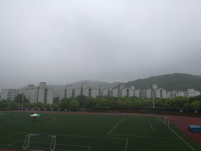 宿舍楼黑白分明,再配上远处的青山,然如一幅意境悠远的江南水墨画。