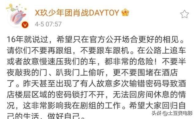例如,肖战多次提到,有些粉丝常常跟在他身后,深夜敲他的门,还会贴着门偷听。