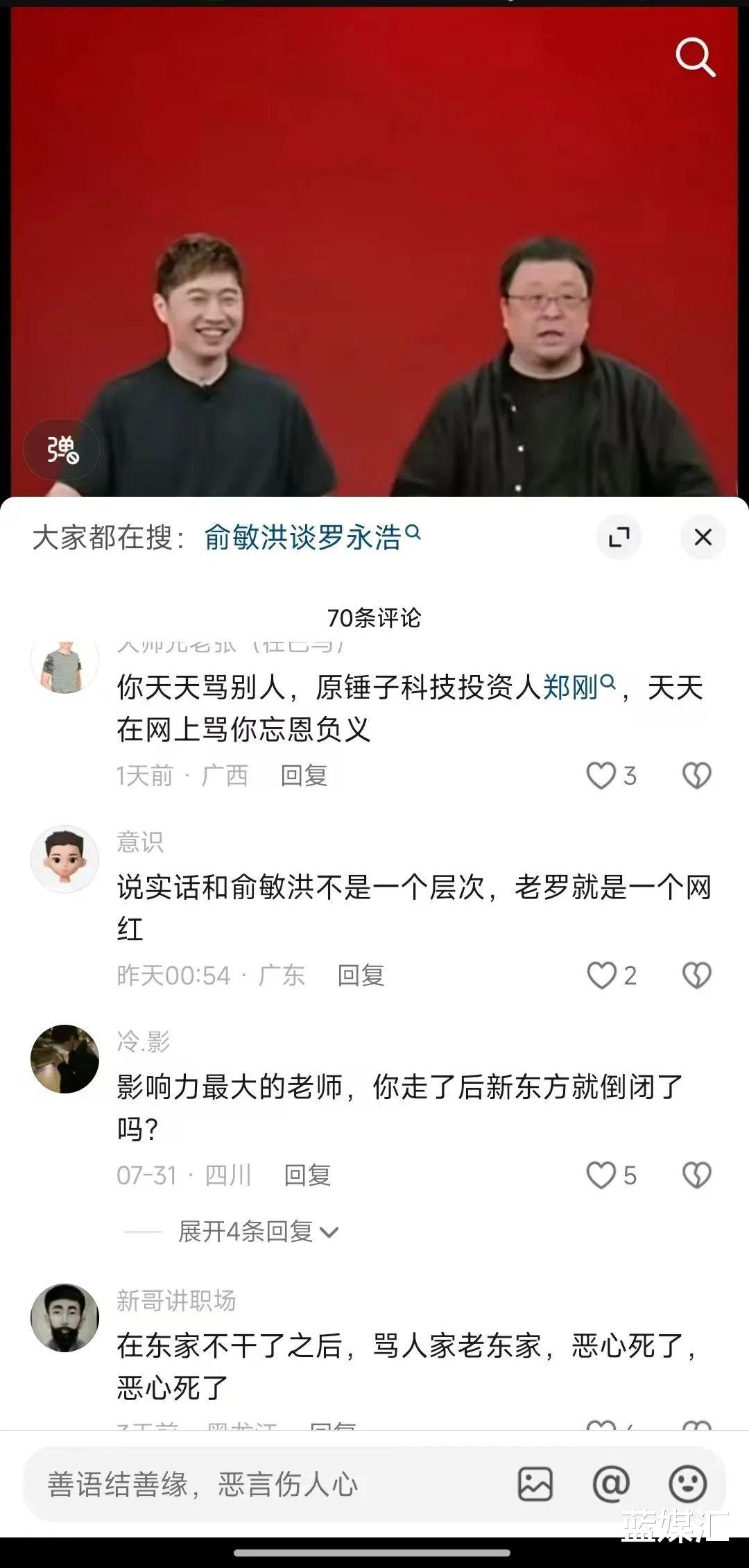 老罗每次评价俞敏洪,不对,哪是评价啊,不都是明怼、人身攻击、报复,骂的都很酣畅淋漓。怎么网友骂你一下,倒是接受不了了?