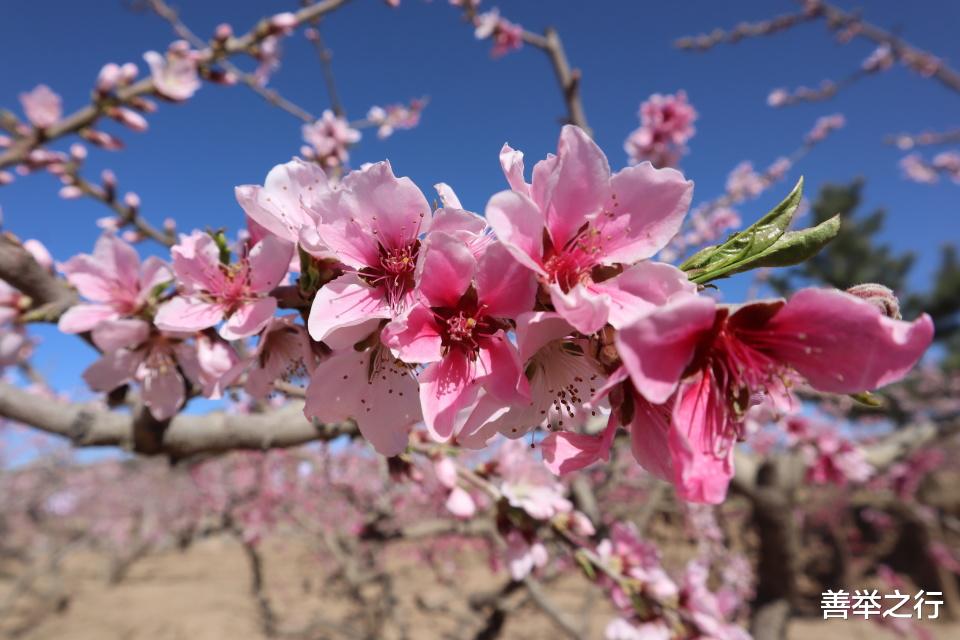 走进四十里铺镇高堡村的桃园,桃花的清香扑面而来。放眼望去,一枝枝、一朵朵楚楚欲燃的粉红桃花,或相拥而生,或含苞待放,在春风中竞弄身姿、翩翩起舞,与蓝天白云辉映出一幅烂漫的春日画卷。以花为媒、以旅兴业、以桃富民,经过多年的发展,这里已形成了“春赏花、夏游玩、秋采摘”的特色乡村旅游,吸引着越来越多的游客前来打卡,当地桃农也依托“千亩桃园”实现了增收致富。