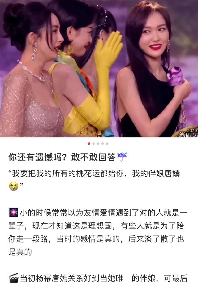 记得有一次采访中,唐嫣提到杨幂时说:“我们从小一起长大,彼此了解得不能再深。”