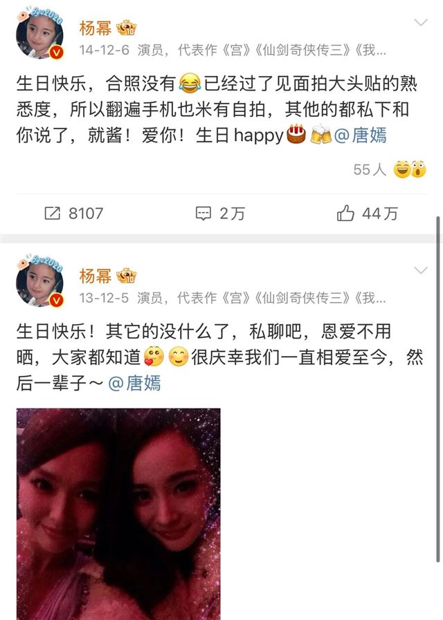 很多人好奇,为什么2018年后杨幂不再为唐嫣庆生了呢?