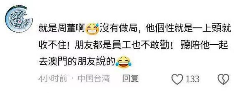 实际上早在去年10月份,有博主爆料过一位Z姓男明星赌博狂输了几十亿,随后评论区有人点名周杰伦,称他的个性就是收不住,朋友都是员工也劝不住,只是当时这个爆料也没了后续,便不了了之,网友们也觉得输掉几十个亿的说法未免太夸张了。