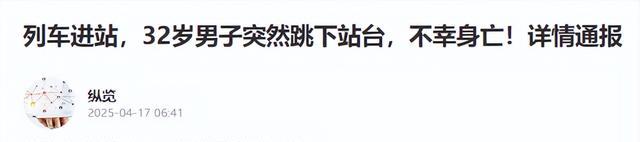 原文登载于天眼新闻2025年04月17日关于32岁男子突然跳下站台身亡!详情通报→的报道