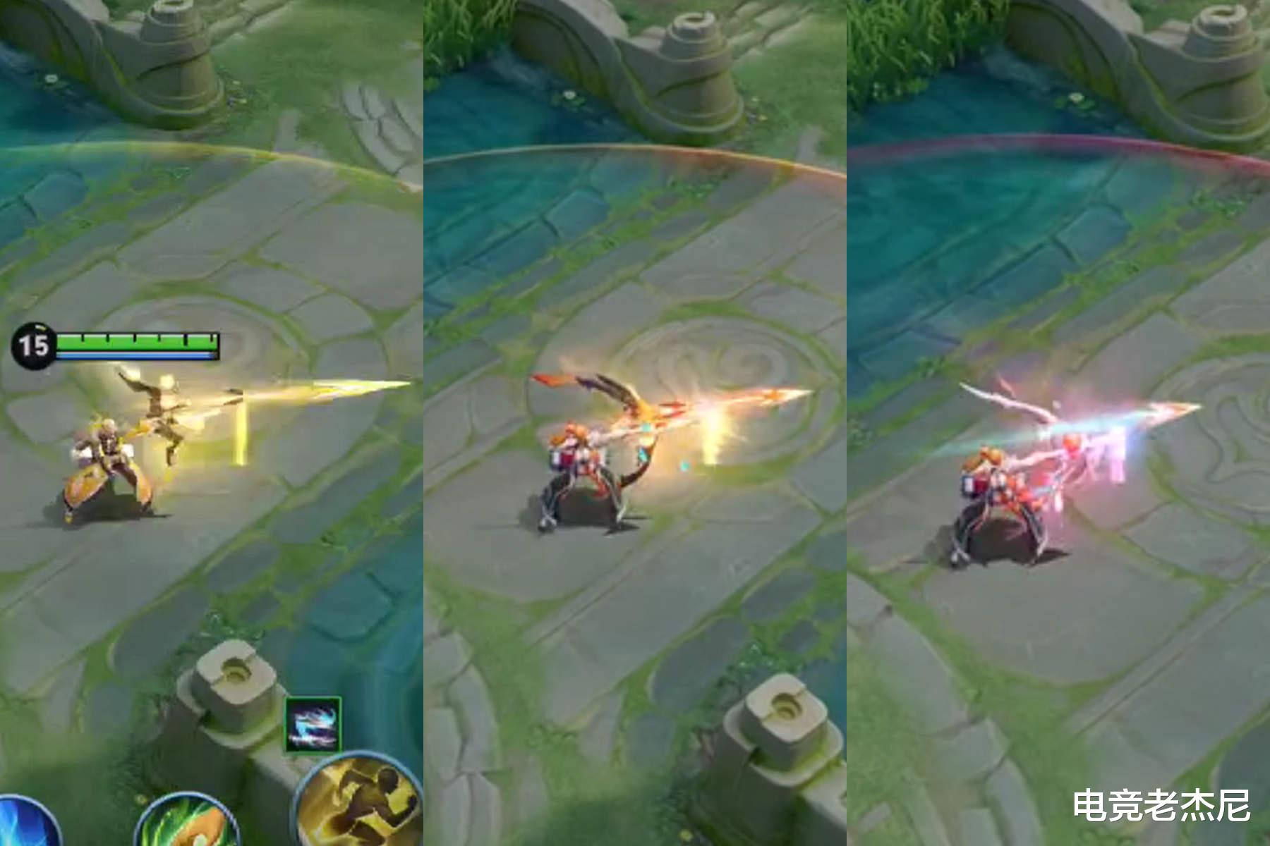 一技能的特效的改变其实并不大,只是颜色上的变更,只是星元的色彩更加丰富会显得更高级一些,尤其是额外的专属武器【钎里之弓】的蓝粉色特效,一眼就看出了武器的不一般