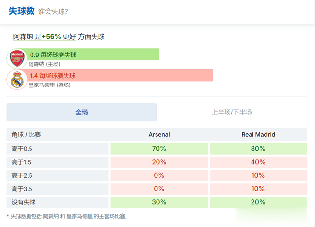 2. 角球攻防:被忽略的“第二战场”两队合计场均制造12.57个角球,超过63%的比赛角球数突破8.5大关。高空争夺将成为胜负手!阿森纳擅长利用角球发动“立体轰炸”,本赛季通过定位球得分占比达28%;皇马则拥有快速反击能力,对手角球进攻未果时,常被其10秒内闪电破门。战术启示:若一方角球战术执行不力,极可能被对手抓住转换机会一击致命!3. 预期进球(xG)暗战:效率决定生死阿森纳的“量变到质变”:主场场均1.79xG(预期进球)位列英超第三,但实际进球转化率仅排第八。机会创造有余,终结能力不足——这是枪手急需破解的魔咒。皇马的“精准打击”:客场1.46xG看似平庸,但实际进球数却常超预期。数据显示,其前锋在高压下的射门精准度比联赛平均高出23%,越是绝境,越显杀手本色!