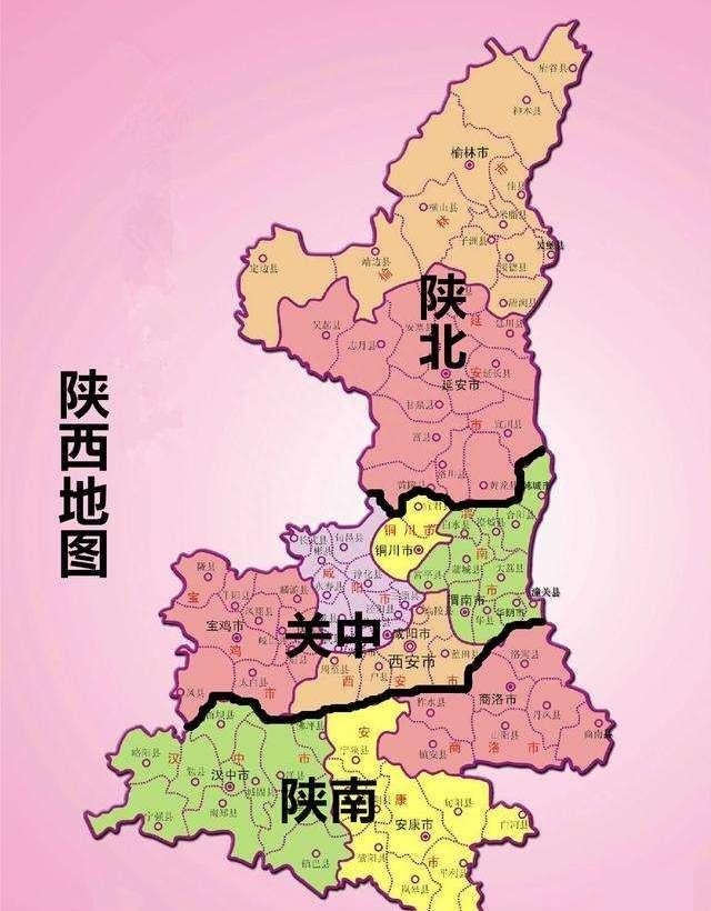 当时陕西地区分为:陕南地区,关中地区,陕北地区。