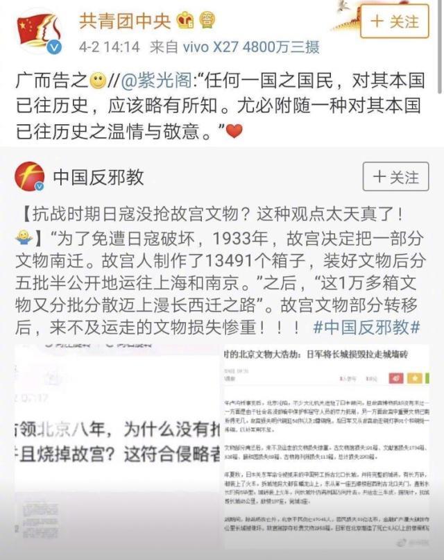 但这还仅仅只是一个开始,在随后的4月2日中,赵立新又发文,“日本占领北京八年,为什么没有抢走故宫里的文物并且烧掉故宫”,并且还发问“这符合侵略者的本性吗?”。