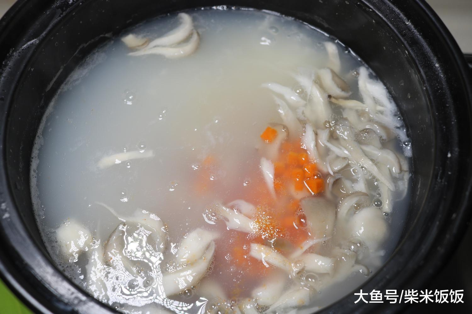 天气越来越冷了,早餐煮一碗这样的粥吧。里面有大米、糯米、瘦肉、蘑菇、胡萝卜、菠菜。内容丰富,味道极好,营养也足足的!