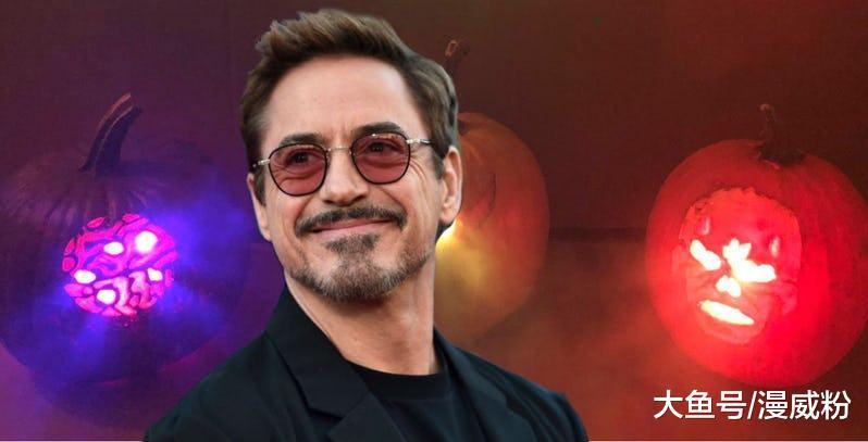 就是有范儿!小罗伯特唐尼在万圣节的装扮:无限宝石南瓜