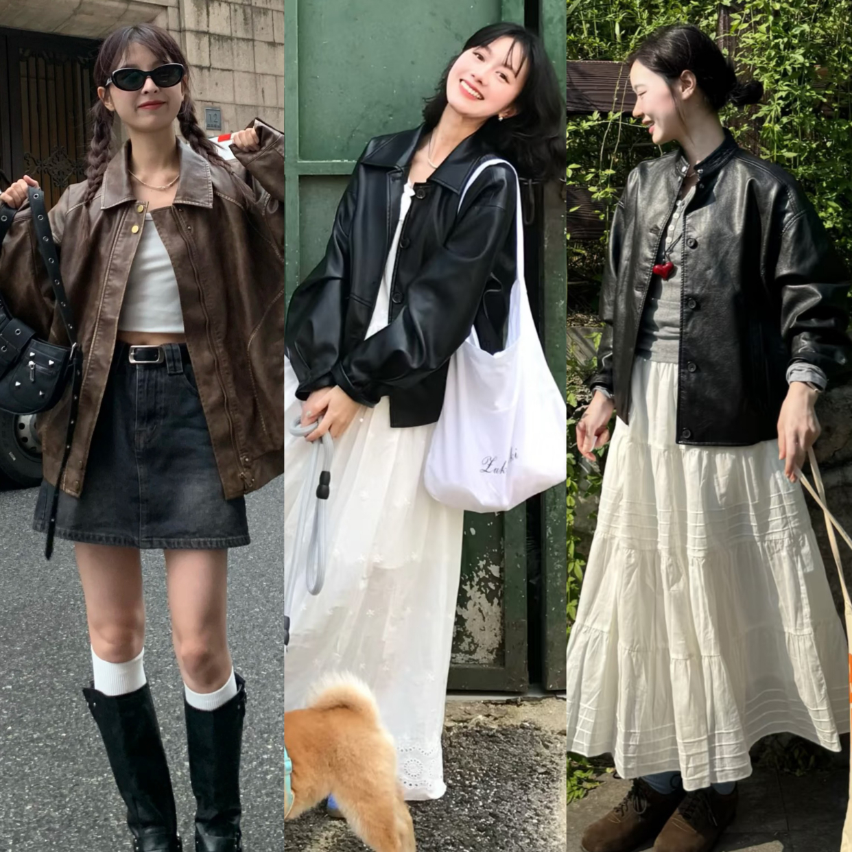 姐妹们!2025开春超火的穿搭公式来了!皮衣+裙子,甜酷风直接拉满,谁穿谁好看!