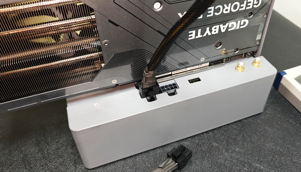 最后插上8pin的显卡供电线缆,再接入显卡的DP/HDMI视频线,EX显卡扩展坞和零刻GTi12 UItra的电源线。