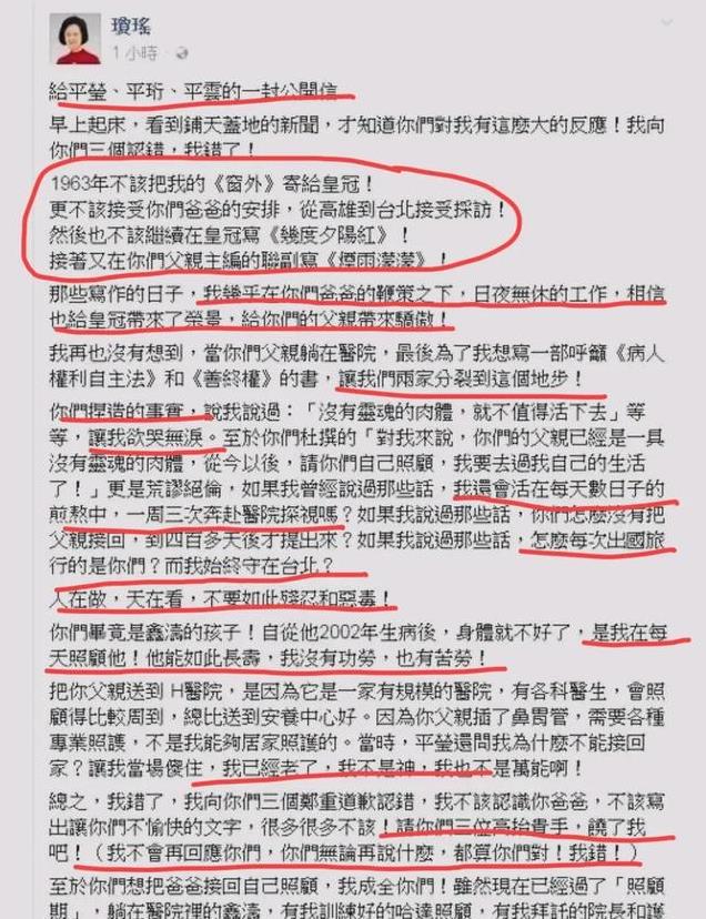 平家对琼瑶所有的污蔑、屈辱,在一封公开信中,琼瑶说的明明白白。