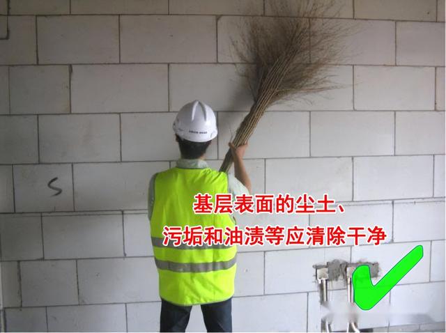 4、甩毛墙面必须粉尘处理干净,浇水湿润墙体。