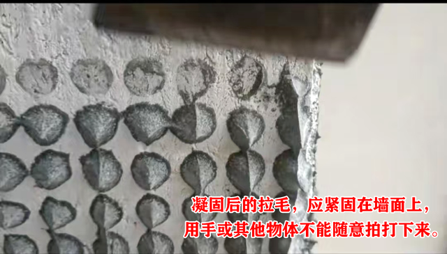 目前好多施工人员没有按正确工艺施工,导致拉毛工艺不能更好的起到加强砂浆粘合作用,后期还是出现分离空鼓脱块,严重影响施工质量问题。