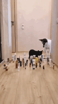 其实,猫咪打翻物品的多半原因还是因为把那些物品当成了猎物,猫咪就是猎人,所以它的捕猎行为会把东西给打翻。这也是为什么当你在走路的时候,猫咪会突然飞扑,上去就是一套喵拳。
