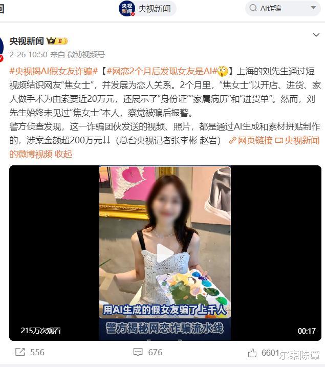 AI换脸诈骗正在爆发!央视新闻2月报道,上海的刘先生通过短视频认识的女友“焦女士”,结果是AI生成的,各种理由骗了他20万,报警后,警察查出该诈骗团伙通过AI生成视频、照片,已骗到的涉案金额超200万元。