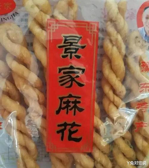 景家麻花有甜咸两种口味,面粉加糖或盐,经兑料、打花、兑水、和面、切剂、揉条、下油烹炸制成。香甜酥脆,嚼后无渣,可放两月不回潮,色泽金黄透亮。系景家祖传,已有 300 余年制作历史,康熙皇帝品尝后列入御餐,自此景家麻花名声大振,生意兴隆,代代相传。