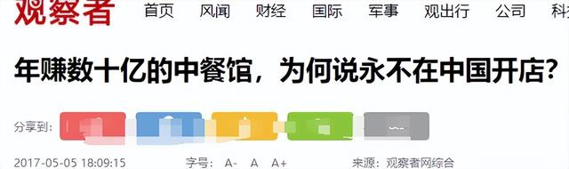 观察者网:年赚数十亿的中餐馆,为何说永不在中国开店?--2017-05-05