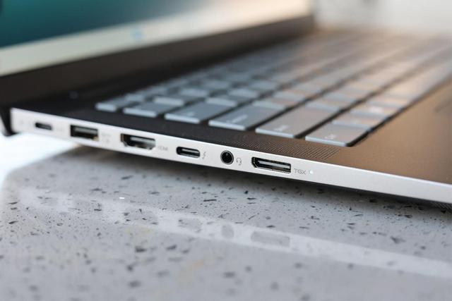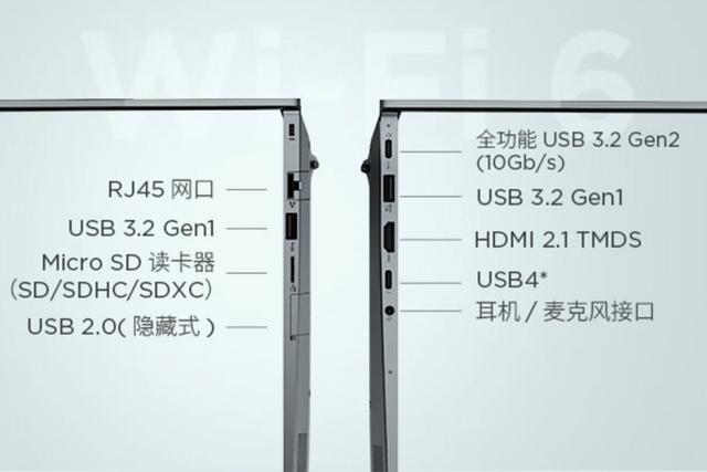 扩展接口部分,笔记本大部分接口都放在了左边,包括了2A2C组合,其中有一个USB4高速接口。另外这款笔记本还有一个隐藏式USB2.0用来插入鼠标接收器,也算是ThinkBook家族的卖点了。