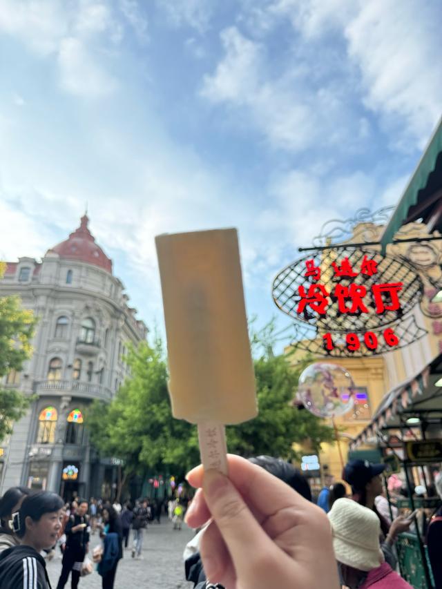 马迭尔冰棍同样是哈尔滨的标志性美食。它是马迭尔宾馆的特色冷饮,一百多年来,始终坚持传统工艺,不添加任何防腐剂,保留了最纯正的奶香味。在零下二十多度的哈尔滨街头,人手一根马迭尔冰棍是常见的景象。剥开包装,浓郁的奶香瞬间飘散开来,冰棍入口即化,细腻绵密,口感醇厚,甜而不腻,让人在冰天雪地中也能尽情享受这份甜蜜与清凉。