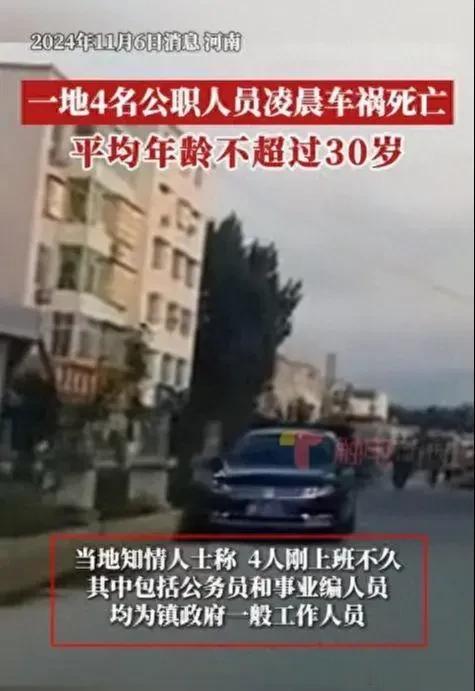 在河南这片土地上,随着寒风渐起,本该是万家团圆的季节,却因为一起车祸让人无比痛心。四名年轻的公职人员,原本肩负着服务社会的重要职责,却在一场突如其来的意外中丧去了生命。面对这样的悲剧,很多人不禁要问:究竟发生了什么?