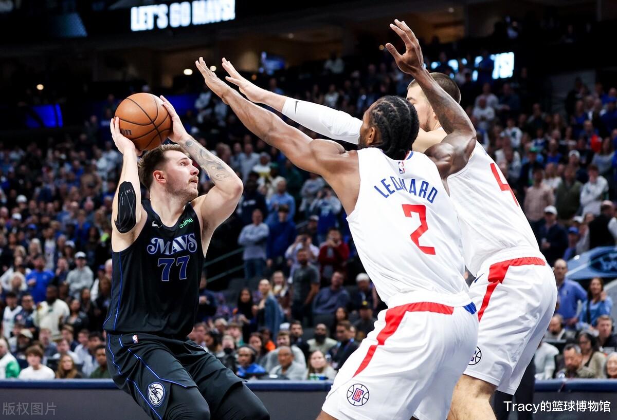 第二节东契奇面对快船的中锋,个个点名单打三分,就和军训一样。