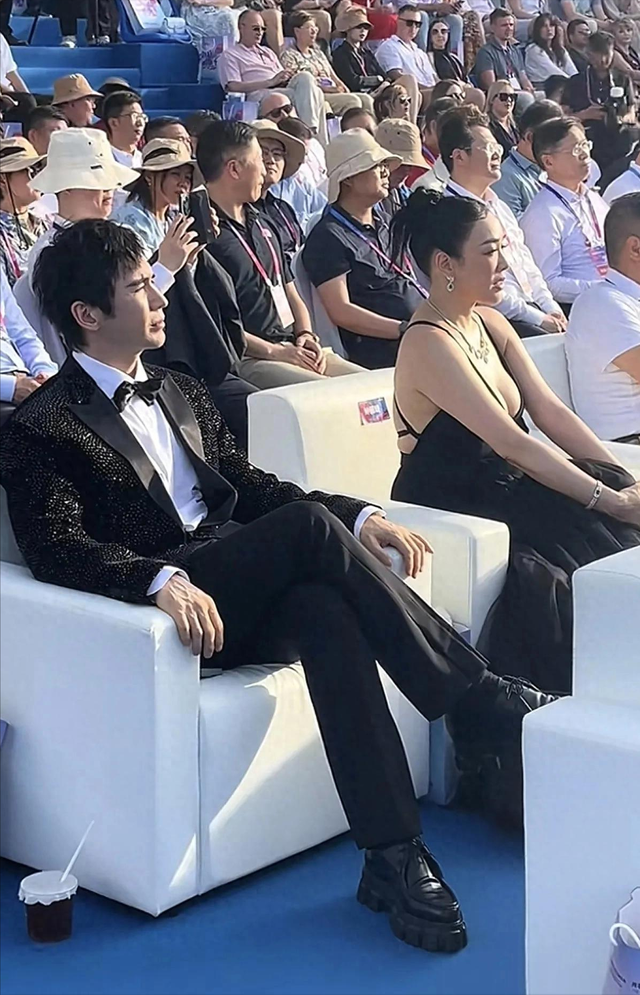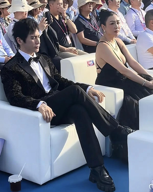 开幕式时,张伦硕全程紧锁眉头,翘着二郎腿,一脸的严肃,和一旁的妻子钟丽缇没有任何交流,也没有趁机“撒狗粮”,倒像是张伦硕展现出一副“被迫”出来营业的感觉。