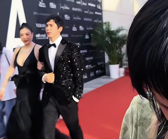当张伦硕牵着钟丽缇走向红毯时,各路镜头齐刷刷向他们照过来,但是张伦硕明显看不出有多高兴,反倒钟丽缇趁着这个时刻,对着镜头“热情满满”。