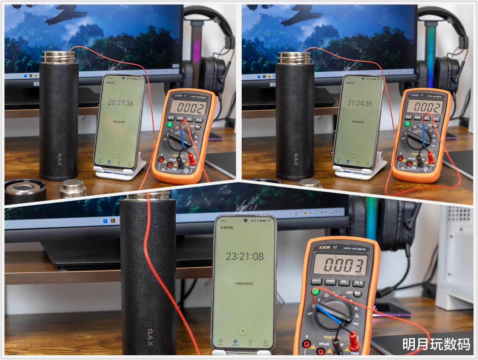而在保冷效果方面,我本来是想用冰块来测试的,但是找遍家里的每个角落也没有找到冻冰块的模具,最后只好用冰水来测试了。刚倒入冰水后,我用万用表测量保温杯的水温为2℃。等待1小时再进行测量时水温依然还是2℃。过了大约3小时,水温仅上升了1℃。没想到宫菱纯钛保温杯保冷效果还要比保温效果好,这要是到了夏天带上冷饮出门想想就很爽。